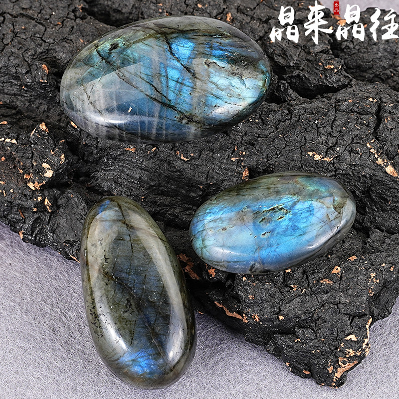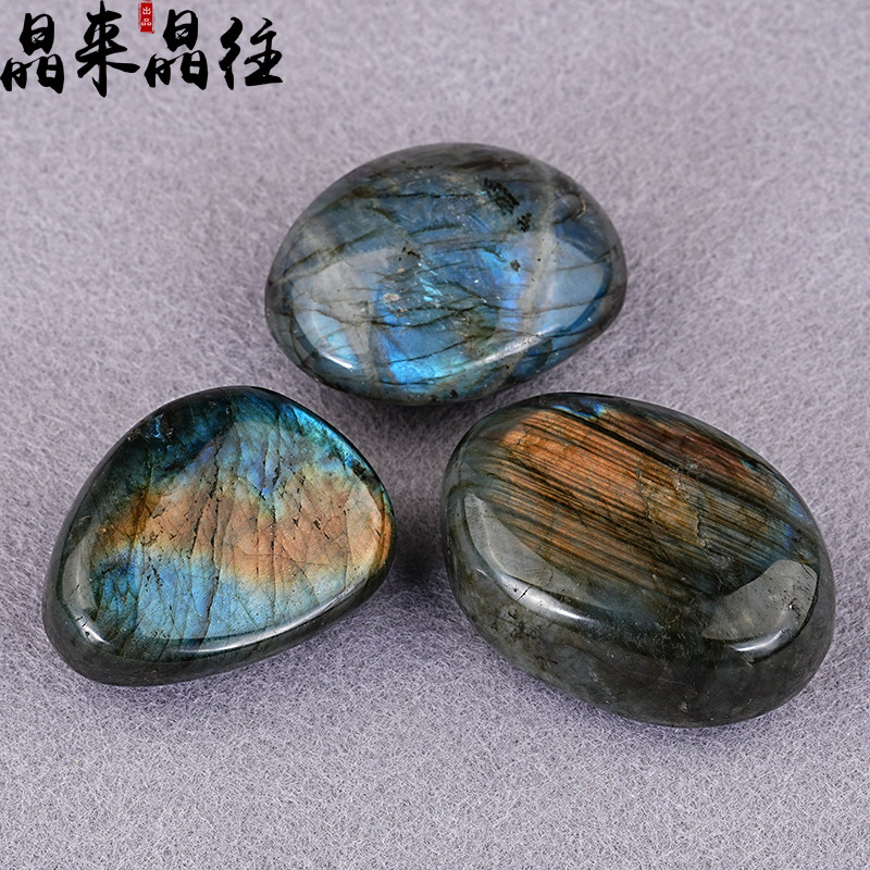 📚 天然拉长石手把件原石收藏观赏灰月光盘玩光谱石头水晶矿物标本