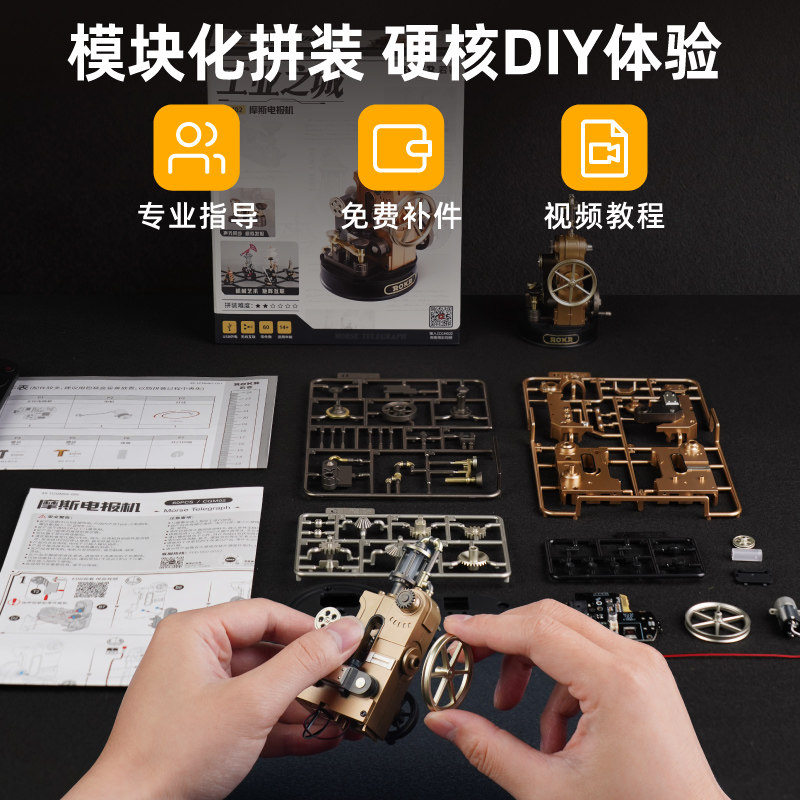 📚 若客工业之城摩斯电报机金属积木拼装模型手工女生男孩玩具积木