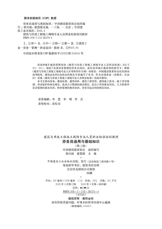 📚 劳务员通用与基础知识第三版2023年新版 建筑与市政工程施工现场专业人员职业标准培训教材 胡兴福 全国八大员考试资料教材书籍