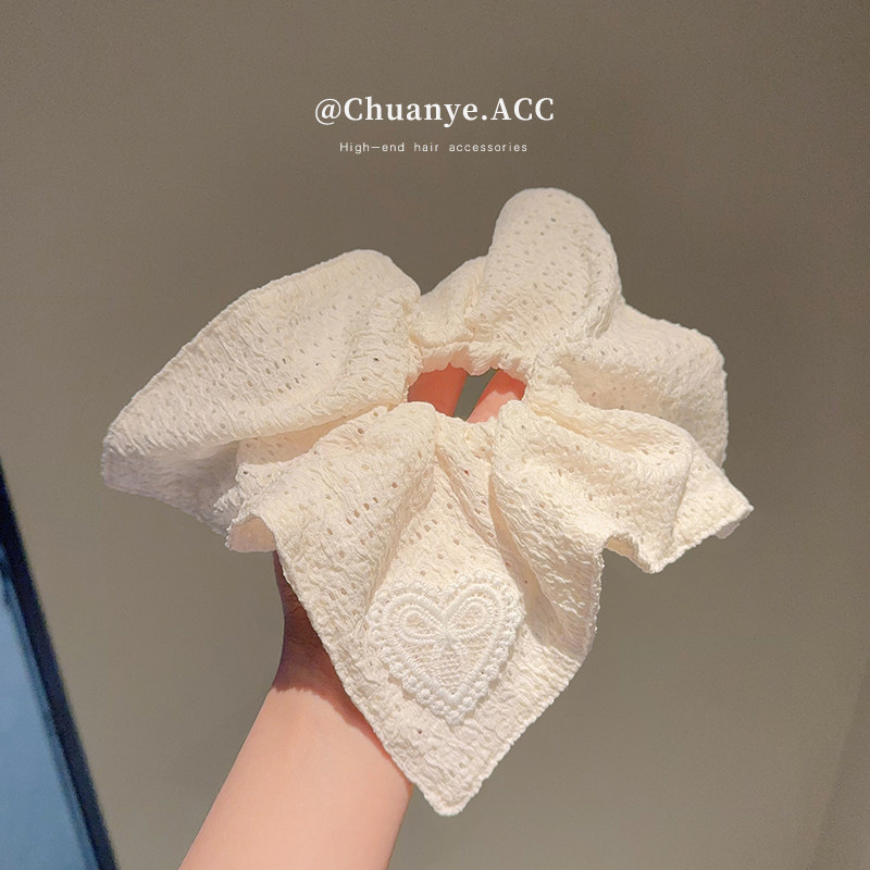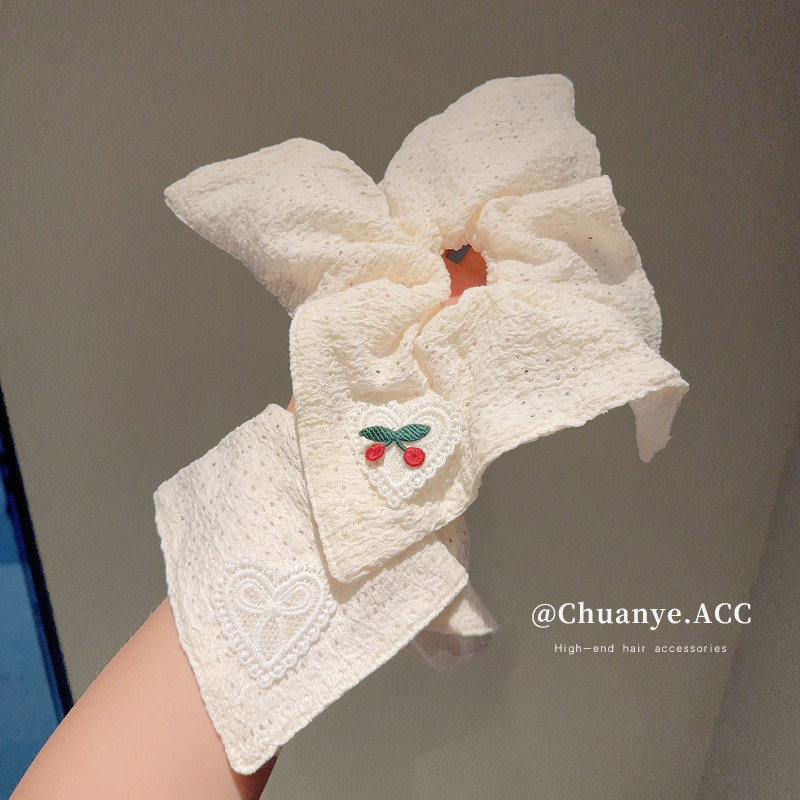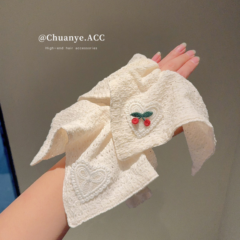 📚 川野饰品蕾丝爱心樱桃白色镂空方巾大肠发圈甜美少女心扎马尾发圈