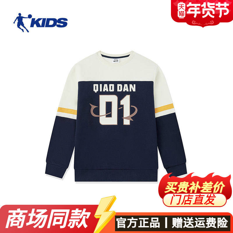 📚 乔丹童装男童卫衣加绒中大童儿童运动上衣长袖套头衫T8441116B