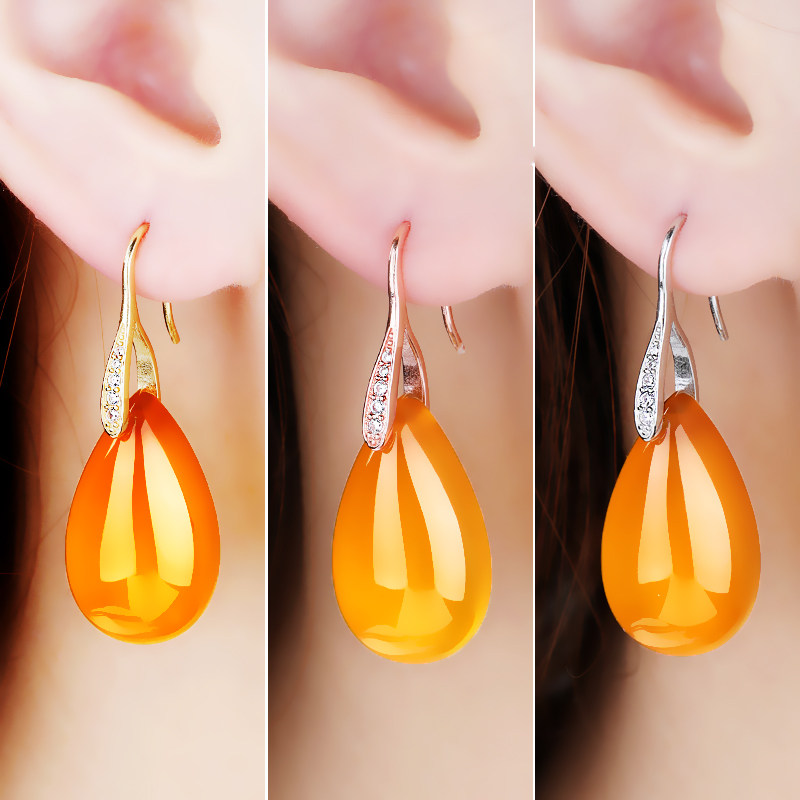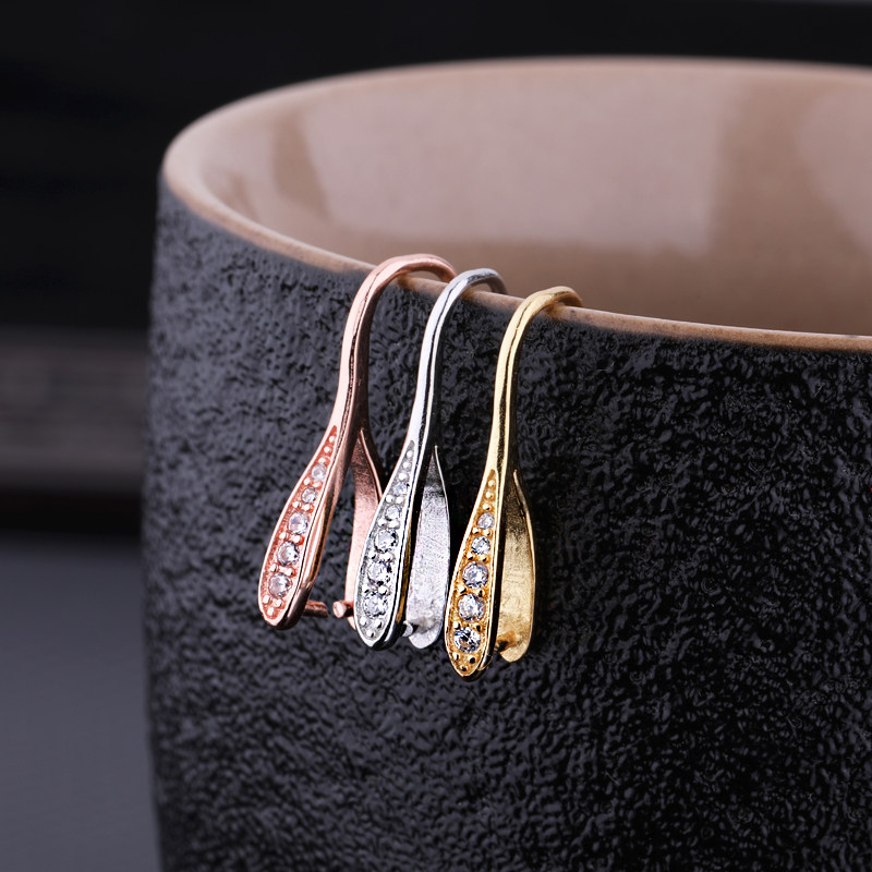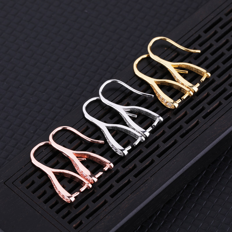 📚 S925纯银耳环空托女镀白金玫瑰金镀黄金色镶嵌蜜蜡琥珀耳饰耳环托