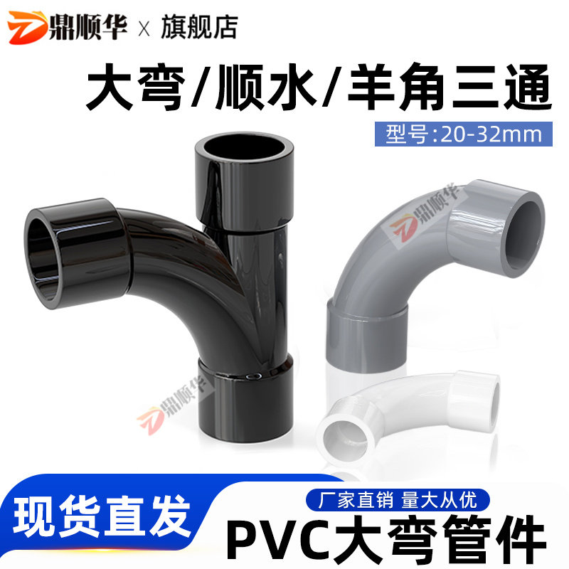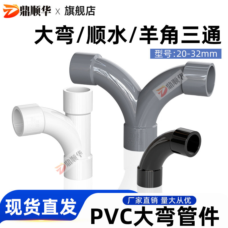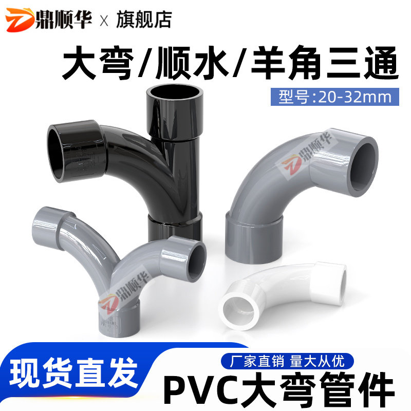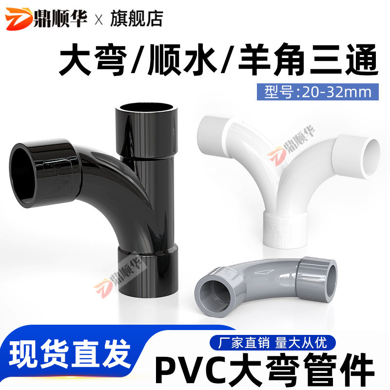 📚 PVC给水管90度大月弯顺水三通羊角三通人字三通塑料上下水管配件