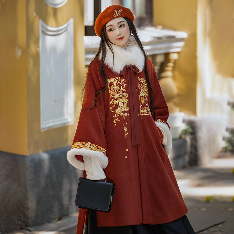 🌸首先说说它的外观,这款大衣采用了明制的设计风格,给人一种温婉、典雅的感觉。而且秋冬季节穿上它,简直是温暖如春,让人感觉非常舒适。🍁
