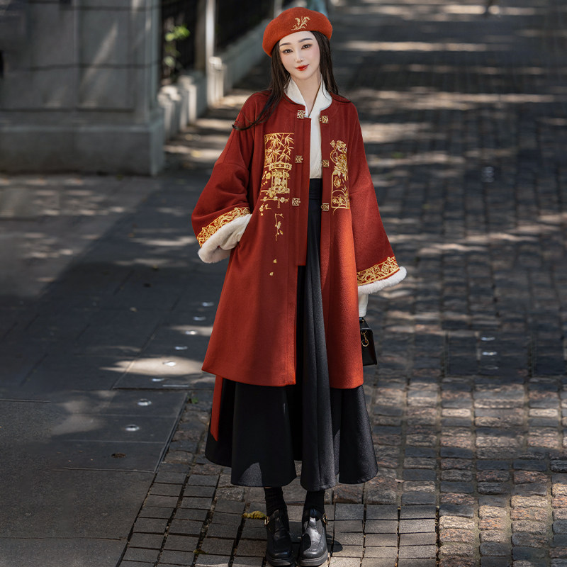 绣花大衣君子秋冬外套