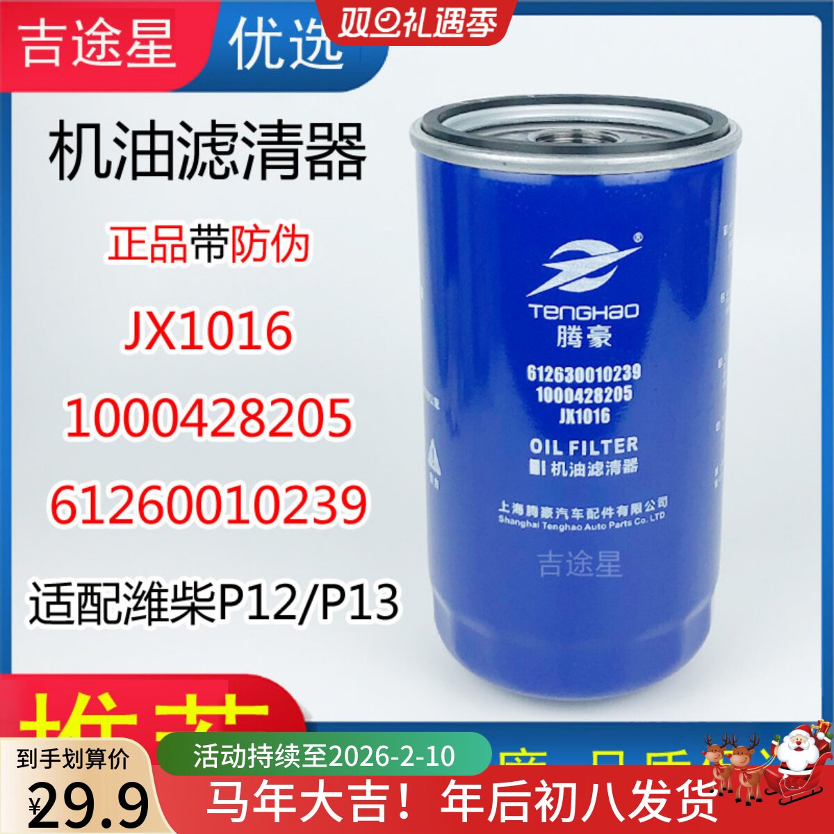 📚 1000428205A机油格滤清器JX1016适配潍柴P12欧曼德龙 61260010239