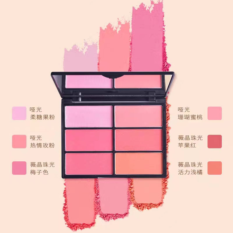 📚 CARMELA卡梅拉六色腮红盘 舞台妆影楼化妆师专用粉色杏色多色高光