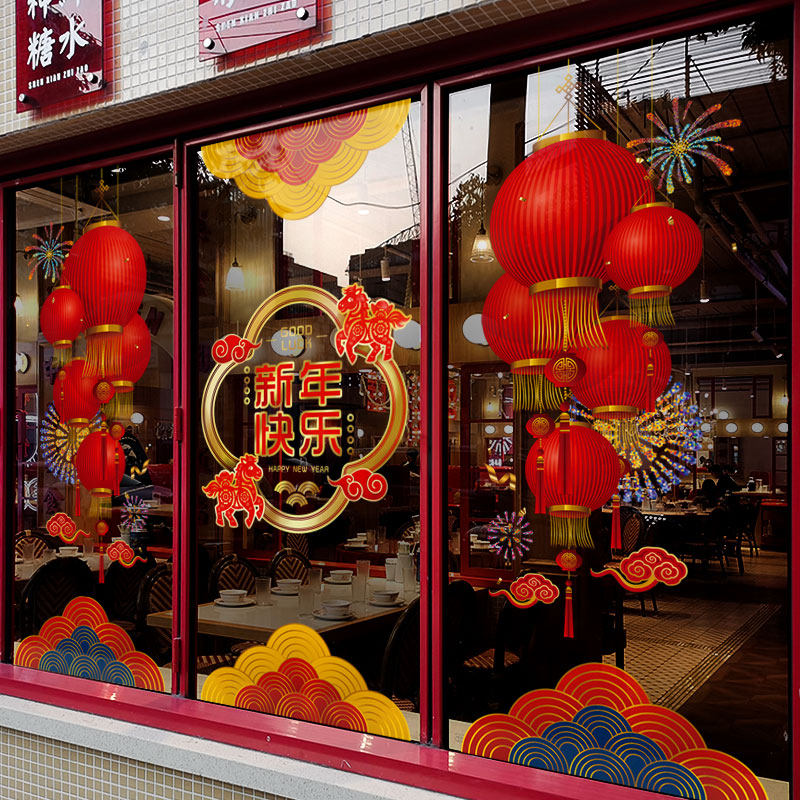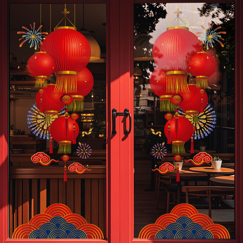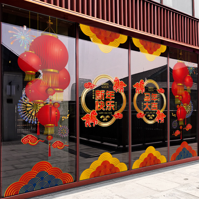 📚 新年装饰布置窗贴马年春节灯笼挂饰窗花2026过年橱窗玻璃贴门贴纸