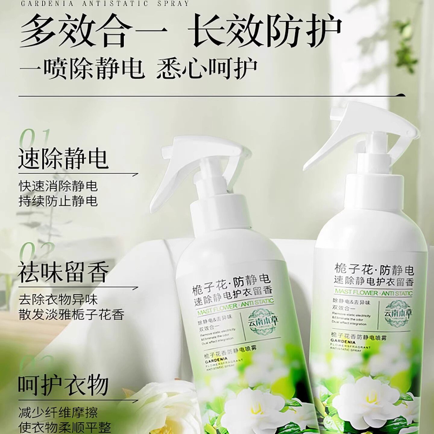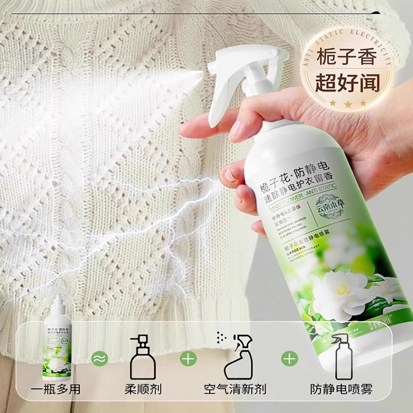 📚 栀子花防静电喷雾衣服衣物柔顺剂持久留香去异味头发去除静电神器