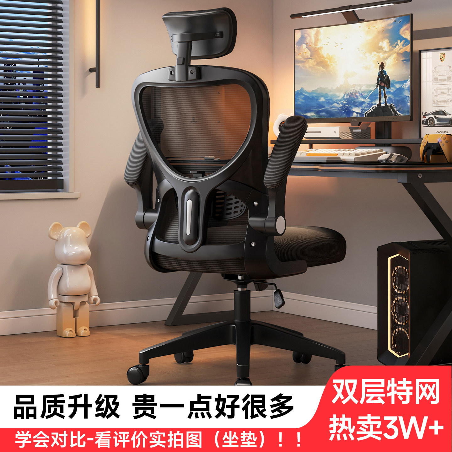 📚 电脑椅舒服久坐家用办公椅子靠背椅人体工学电竞椅学生宿舍学习椅