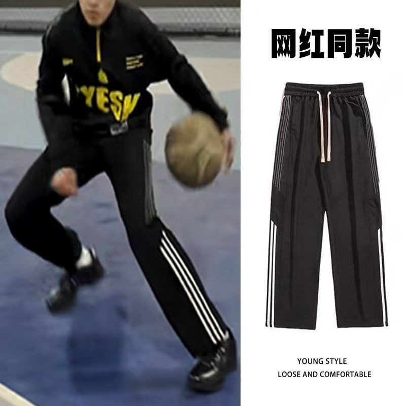 📚 传奇商行夏季休闲卫裤男生薄款篮球裤三条杠条纹运动裤子垂感直筒