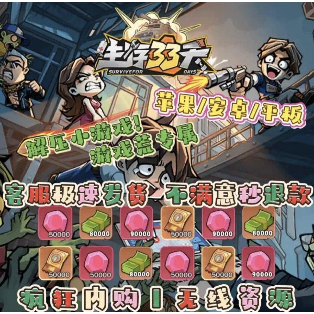📚 生存33天无限内购资源来袭全角色全皮肤+资源任刷+GM后台特权