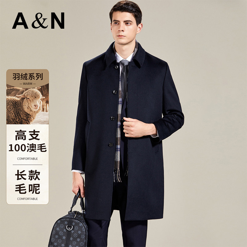 📚 【高支细腻100%澳毛】秋冬长款大衣男商务休闲纯羊毛呢外套