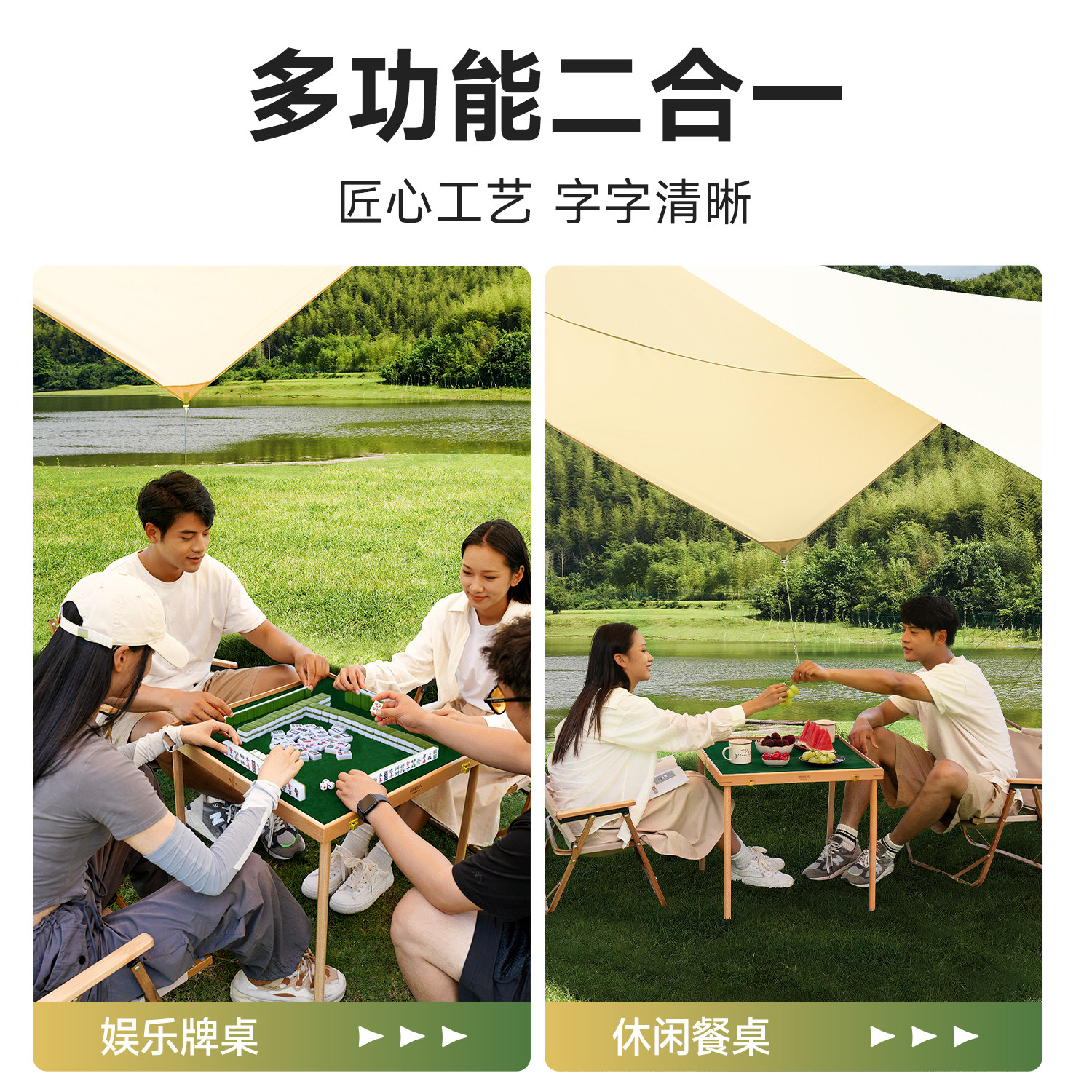 📚 原始人户外折叠麻将桌子旅行便携迷你麻将牌野餐桌椅露营装备用品