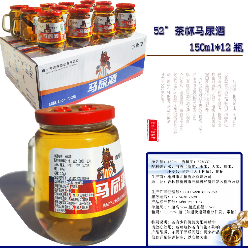📚 佰福源52度马尿酒150ml茶杯酒整箱12瓶口粮酒42度网红礼品酒榆树