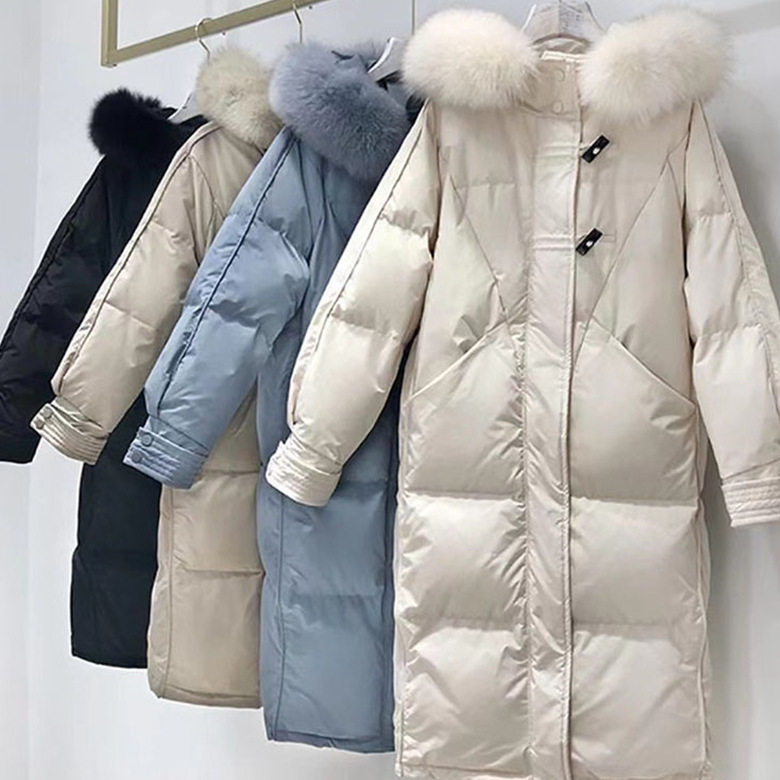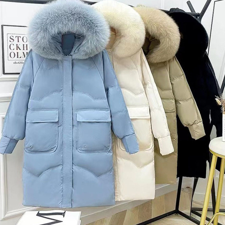 📚 冬季奶呼呼黄色中长款毛领连帽羽绒服平湖女款高端女冬季新款加厚