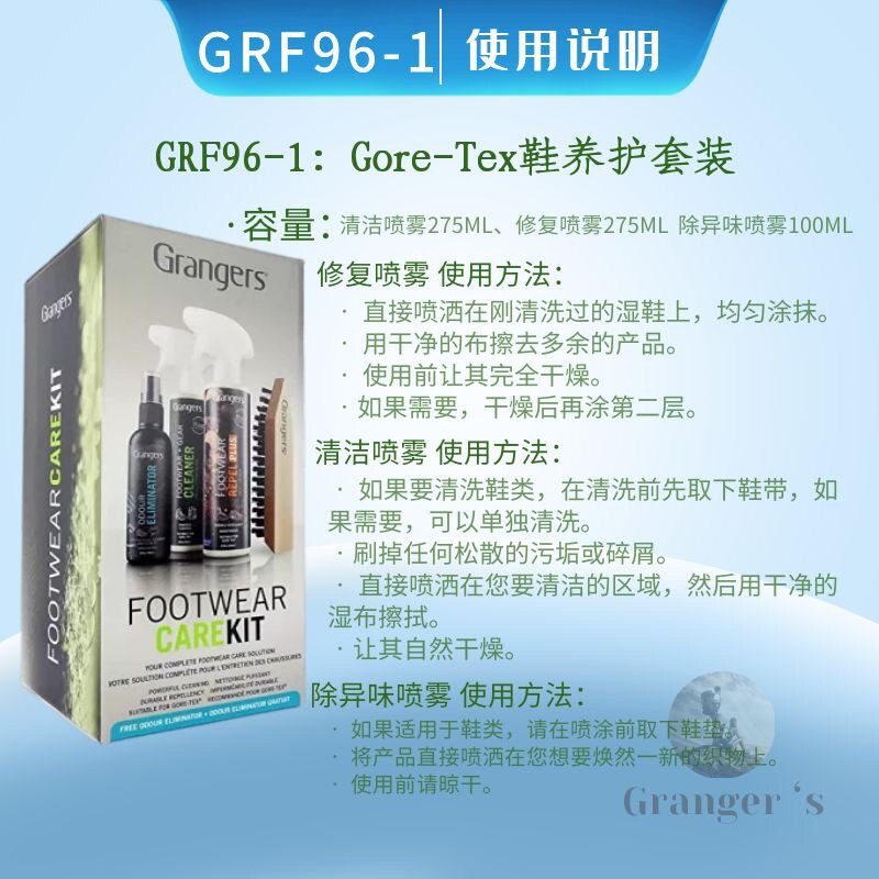 📚 Grangers 户外GRF206鞋靴防水修复护理套装清洗喷剂清除异味刷子