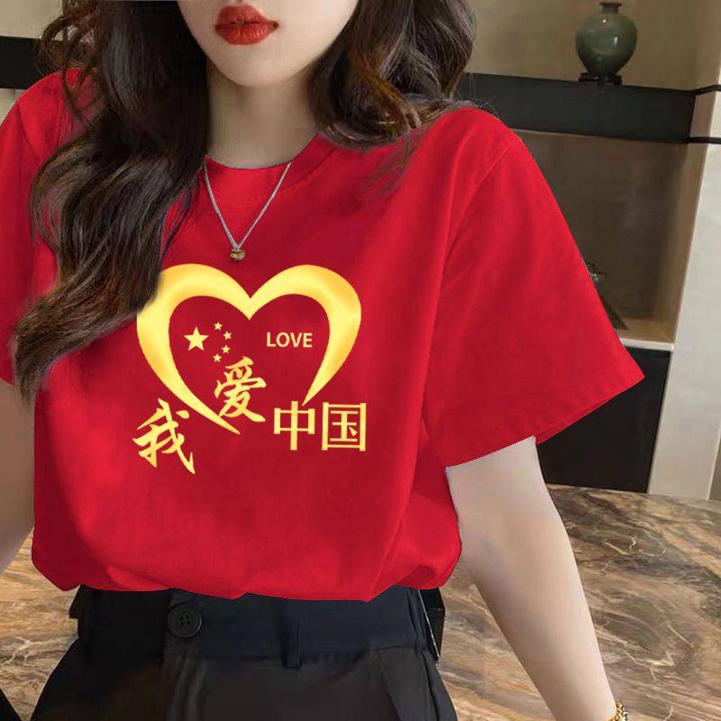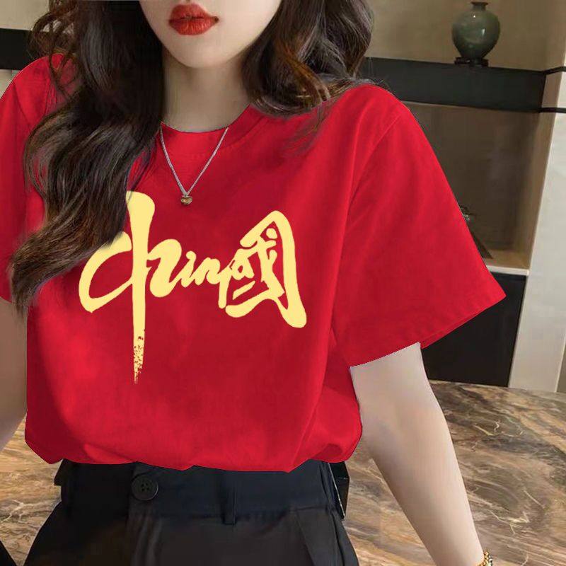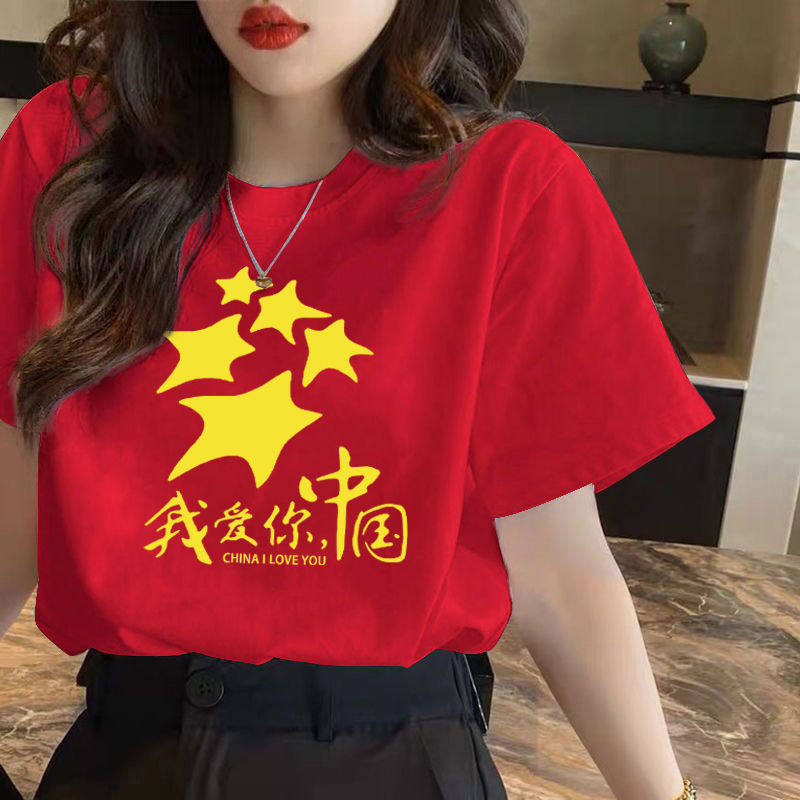 📚 中国庆红色T恤短袖男女红歌合唱学生学校集体活动表演服装宽松潮t