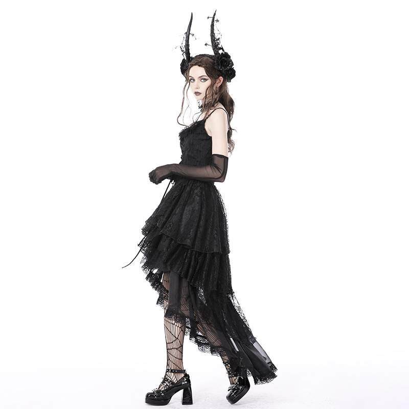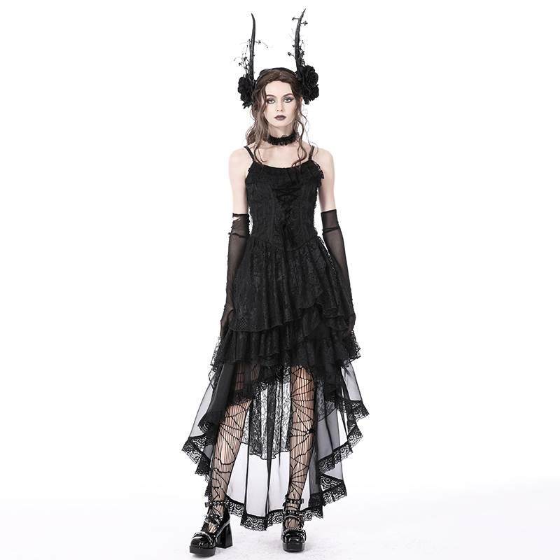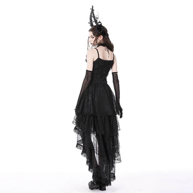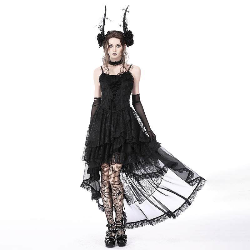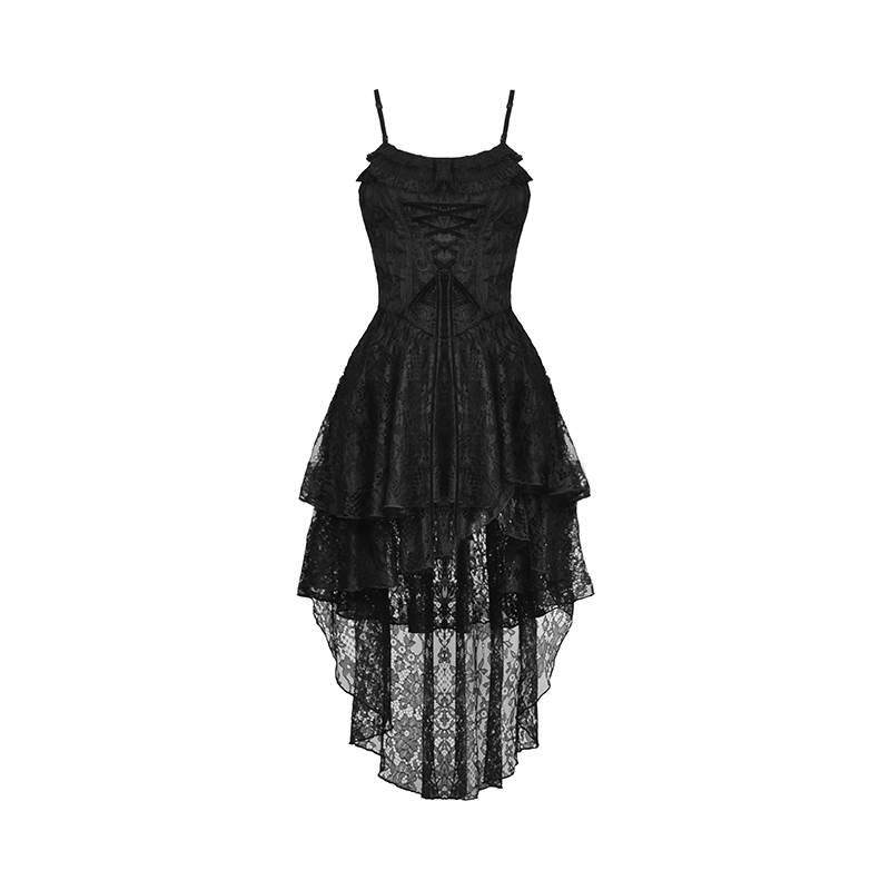 📚 欧美个性原创设计哥特式幽灵褶边蕾丝高低背带连衣裙DW765