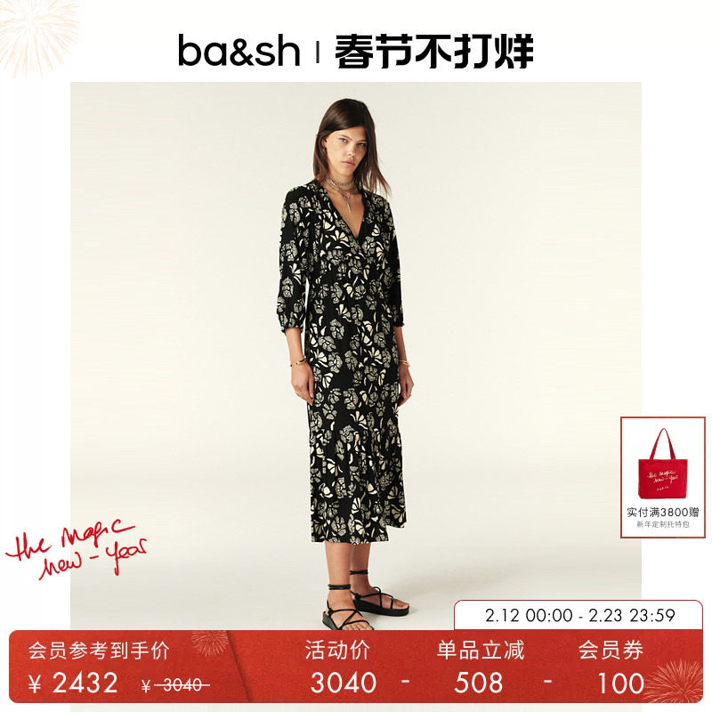 📚 bash春季蝶恋兰香法式浪漫迷笛双色印花度假风连衣裙长裙1E25AFER