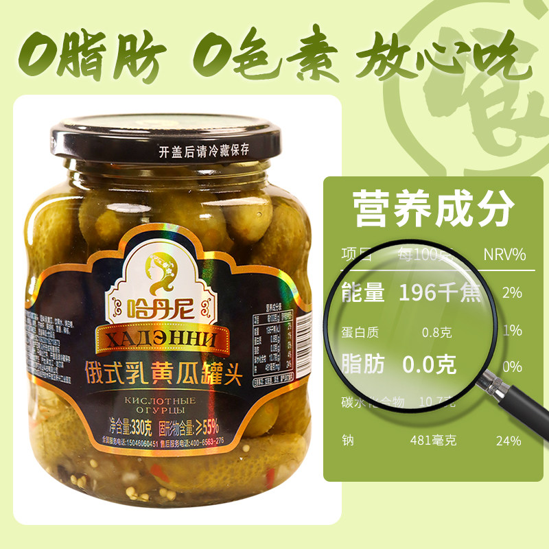 📚 俄式酸乳瓜330g酸黄瓜小黄瓜商用汉堡食材罐头小菜下饭下酒菜