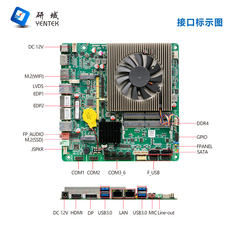 📚 研域YS730M1工控主板7代i5-7300HQ双网6串B150迷你ITX工业机电脑