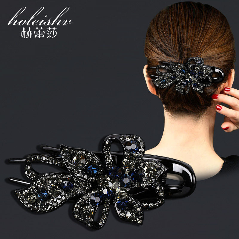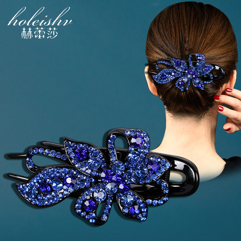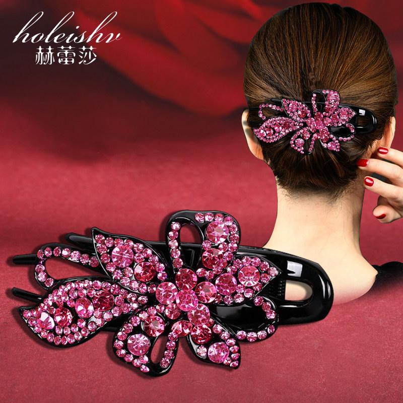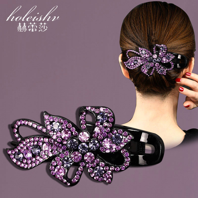📚 韩国高档抓夹女后脑勺发夹大号妈妈鸭嘴夹气质镶钻复古盘头发夹子