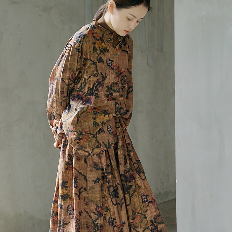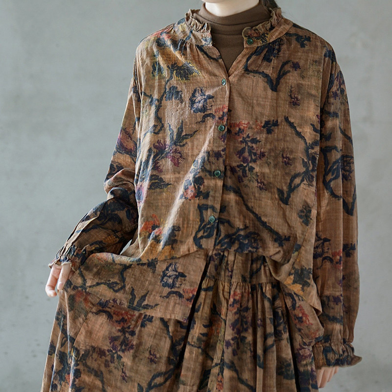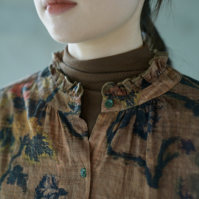 📚 原创复古自然主义春夏印花衬衫 全棉立领做旧小众款式两穿上衣