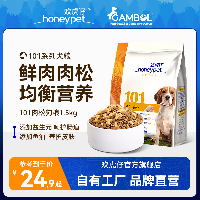 📚 欢虎仔101狗粮肉松通用贵宾柯基博美金毛成幼犬全价1.5kg