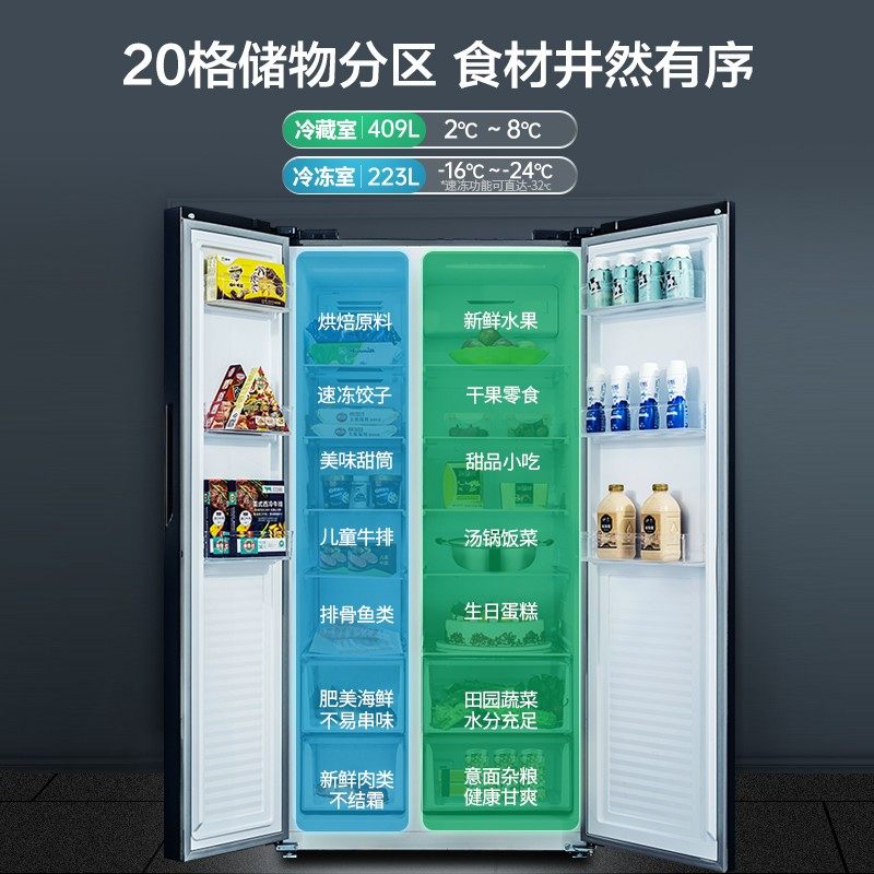📚 美菱电冰箱632L家用大容量对开门双开门风冷无霜变频一级节能冰箱