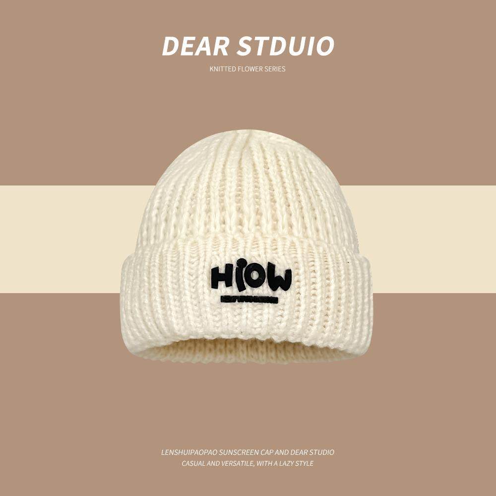 📚 韩版甜酷辣妹粉色字母贴标针织帽子女秋冬季保暖百搭显脸小毛线帽