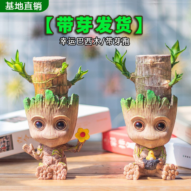 📚 巴西木带芽发货水培幸运木室内办公室桌面小盆栽格鲁特小树人摆件