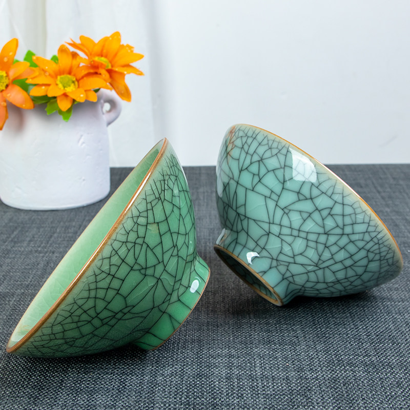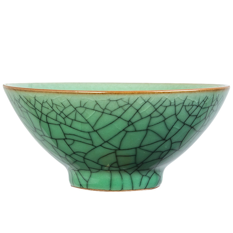 📚 陶瓷日式5寸饭碗青瓷斗笠碗仿古家用单个小号酒碗龙泉冰裂纹餐具