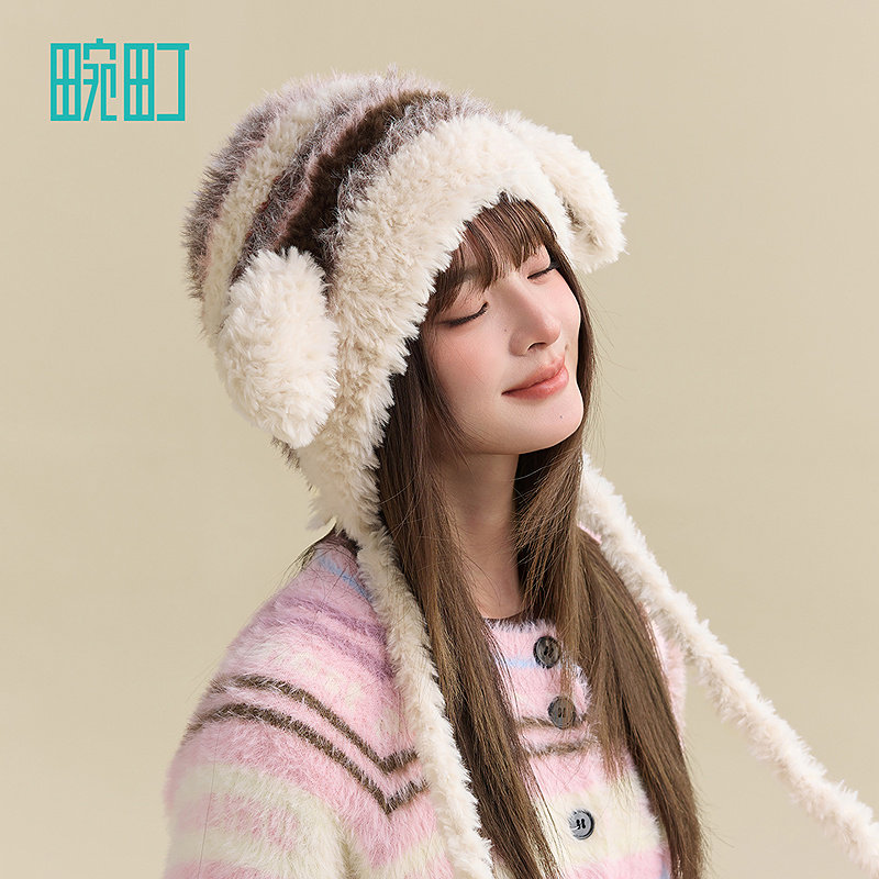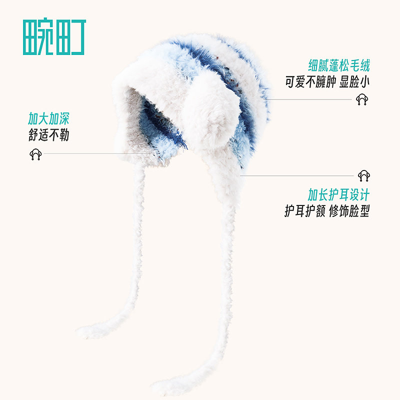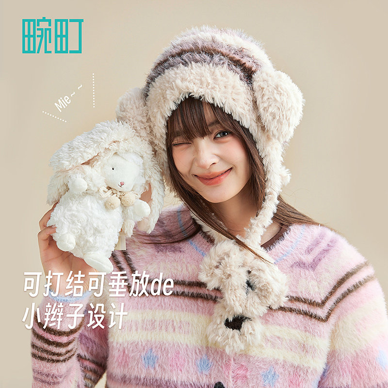 📚 畹町小脸感呼吸帽泡芙小羊针织堆堆帽子女秋冬季护耳朵保暖毛线帽