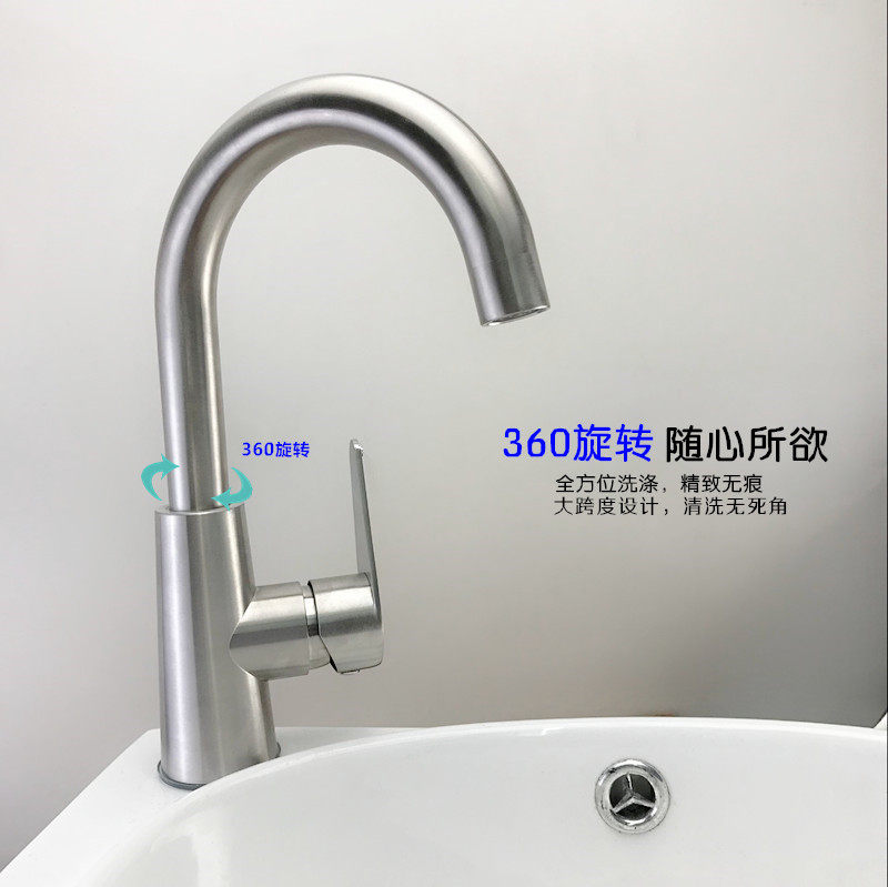 📚 厨房水龙头家用洗菜盆冷热面盆无铅sus304不锈钢拉丝可旋转水龙头