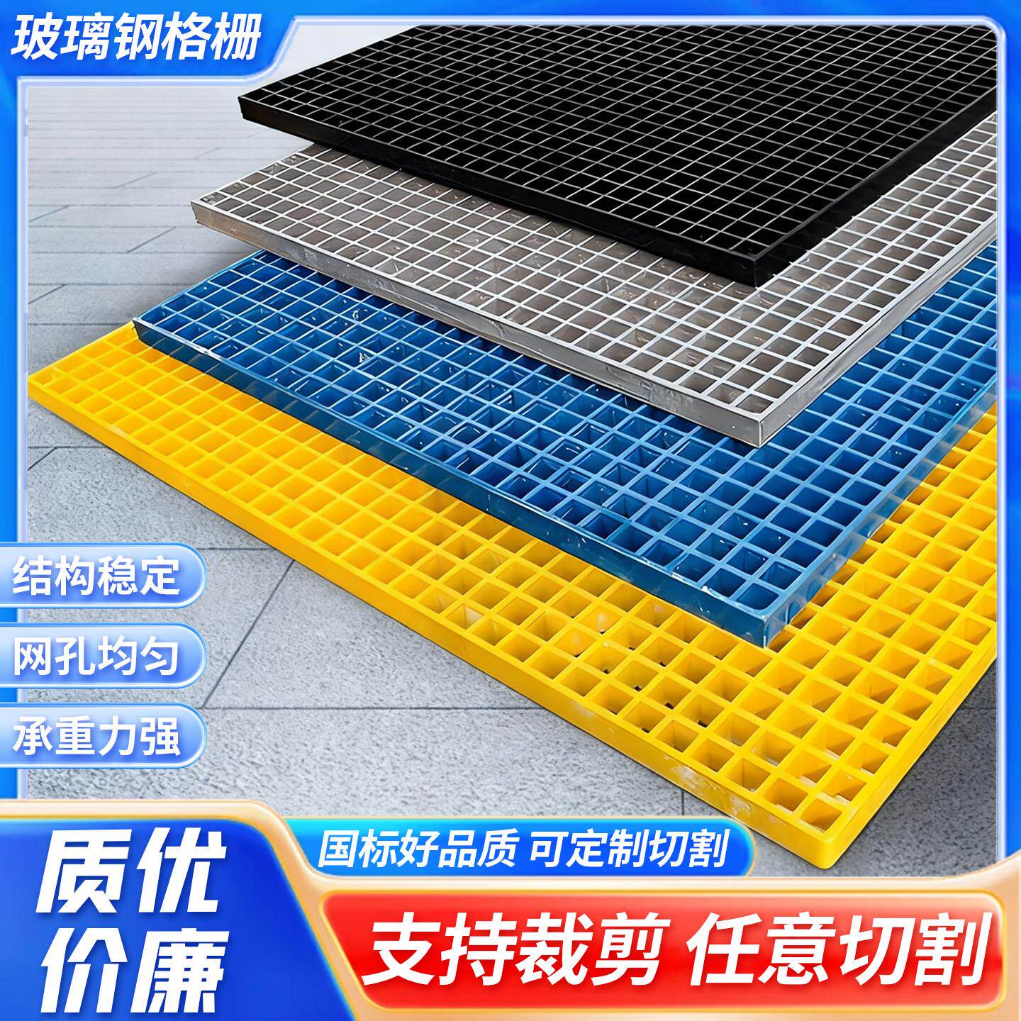 📚 玻璃钢格栅盖板洗车房排水地面排水沟板污水处理厂网格板密封盖板