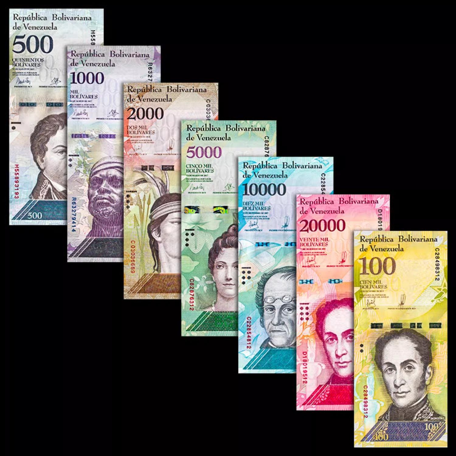 📚 真币纸币彩虹币玻利瓦尔100-2万大全套7张外国钱币各国外币纪念币