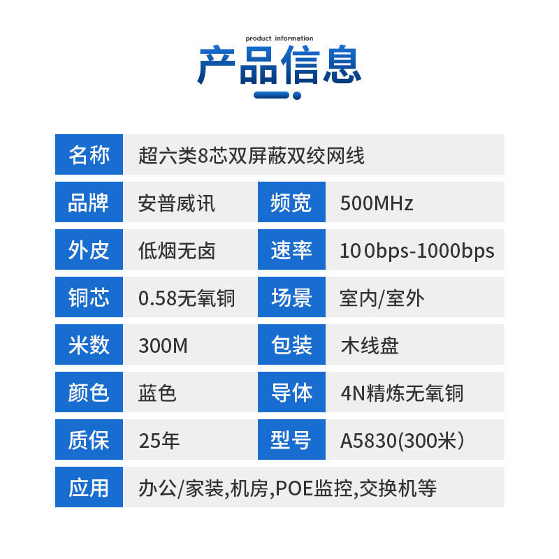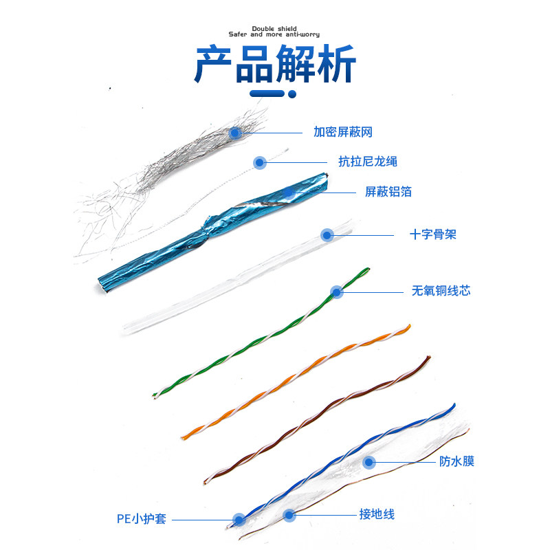 📚 安普高速超五六类无氧纯铜POE监控室内外工程双屏蔽千兆网线家用