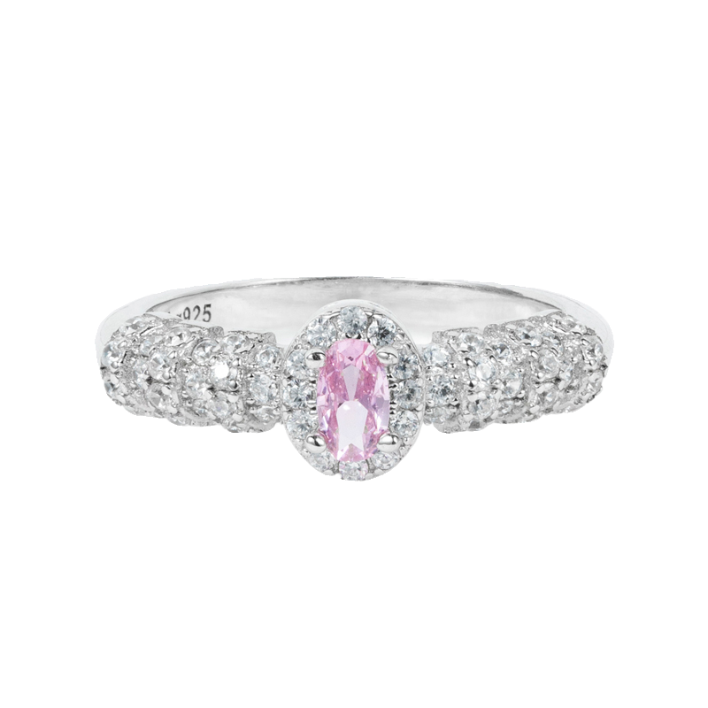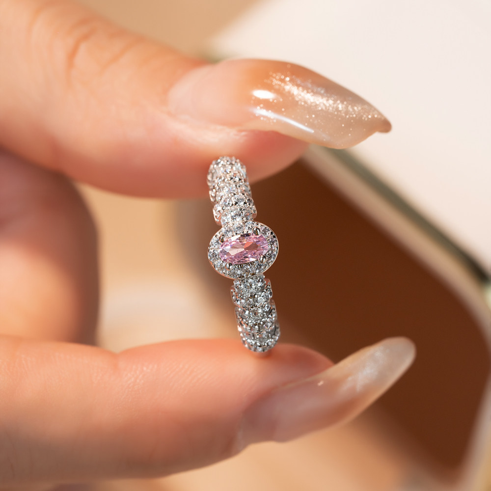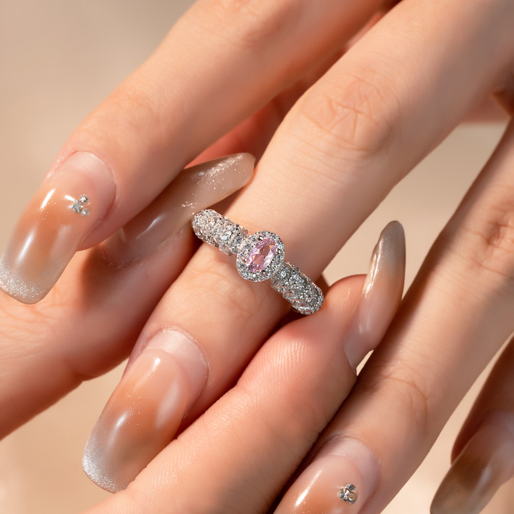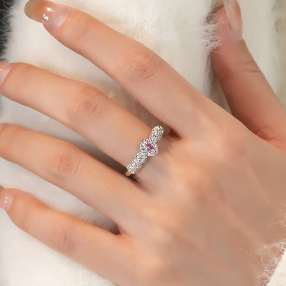 📚 泡泡糖鸽子蛋粉色锆石戒指女纯银人造钻石超闪高碳钻ins风设计感