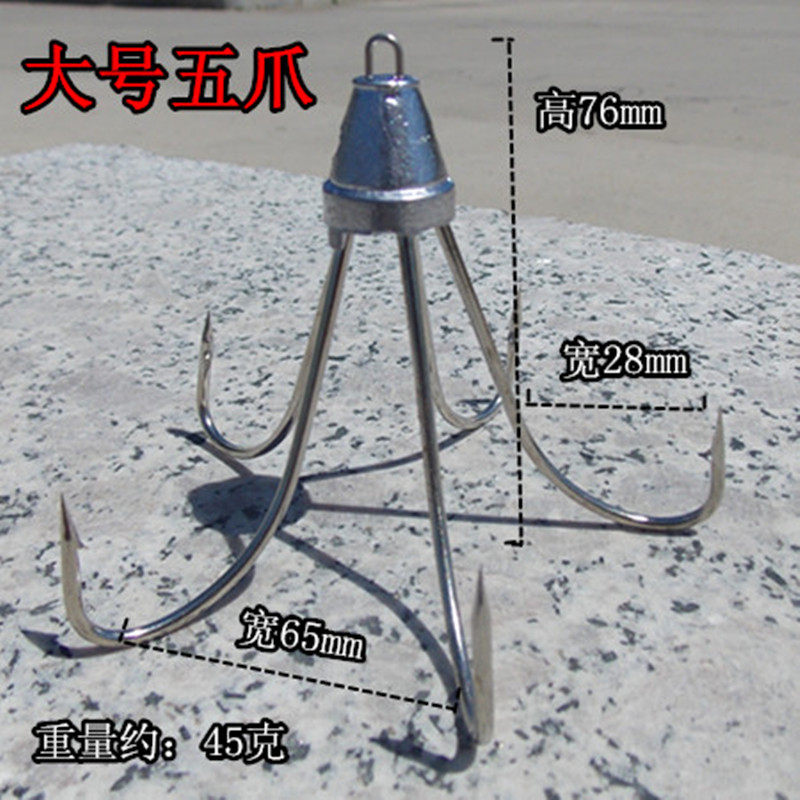 📚 不锈钢锚鱼钩超大号五爪抓三爪锋利五本三本路亚带倒刺吊钩爆炸钩