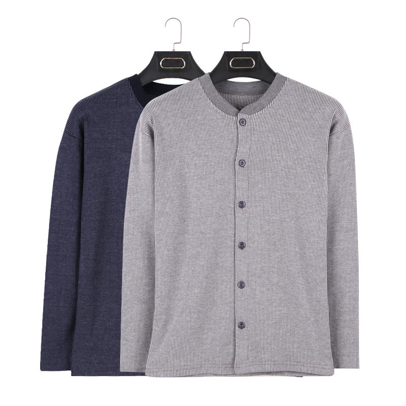 📚 中老年人系扣男士开衫秋衣加肥加大码对襟开身系扣棉毛衫单件上衣