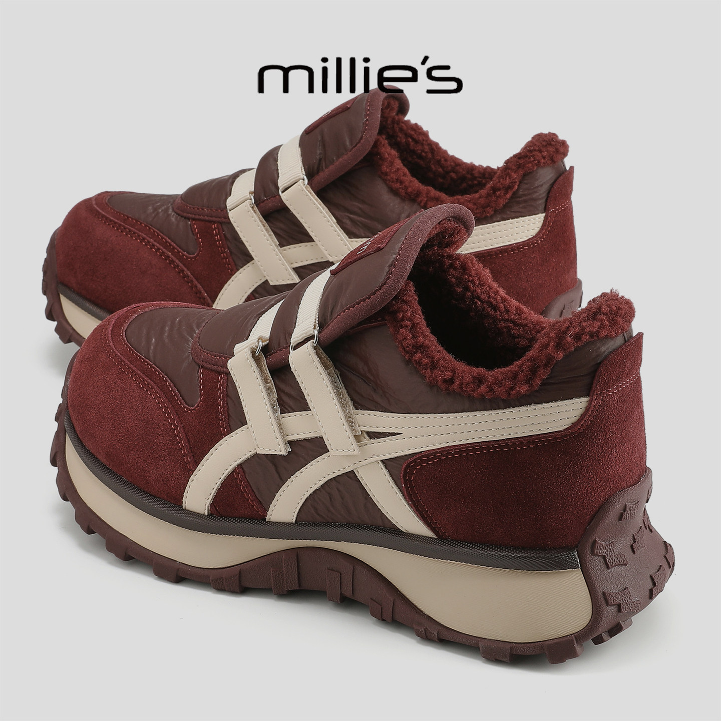 📚 MILLIE'S/妙丽2025新款厚底增高老爹鞋加绒加厚魔术贴休闲运动鞋