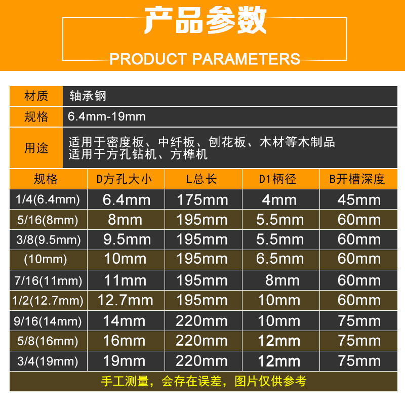 📚 木工方孔钻头方榫钻方眼钻打方孔钻头开榫钻芯木工工具方形开孔器