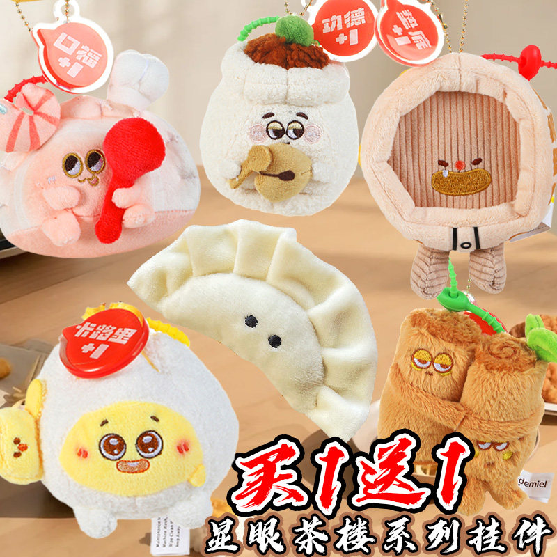 📚 正版显眼茶楼毛绒玩偶可爱虾饺烧卖饺子公仔学生书包挂件创意礼物