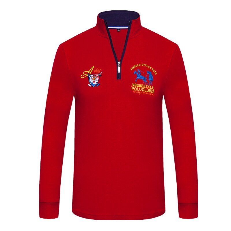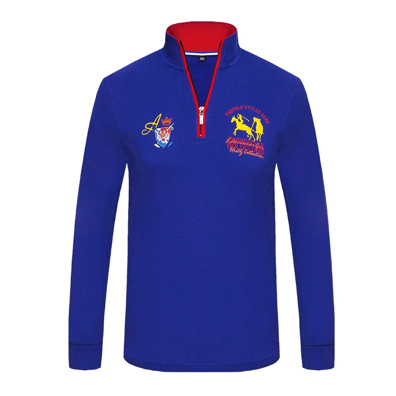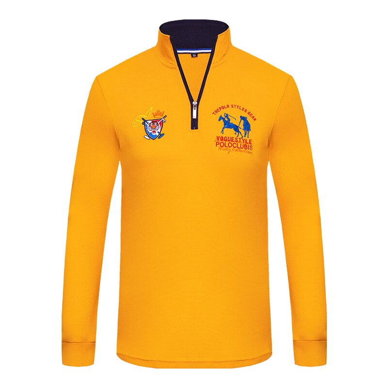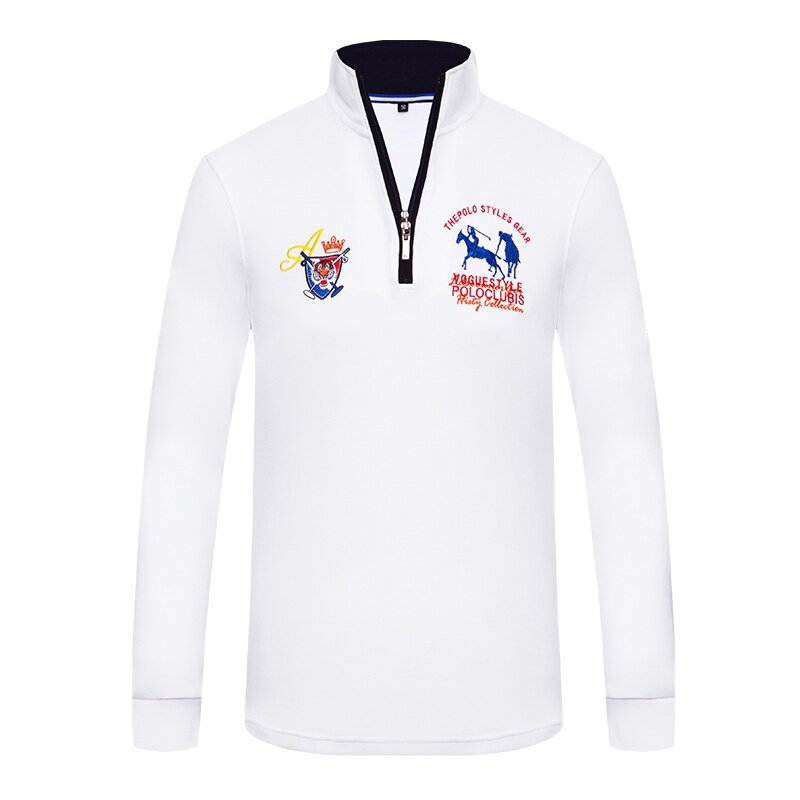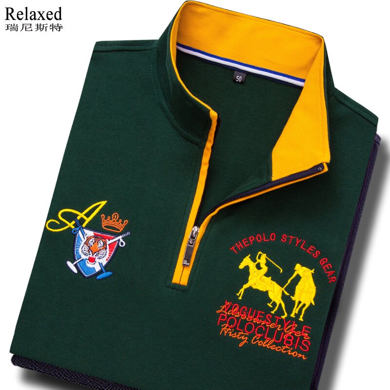 📚 清仓特价男装长袖翻领T恤老虎头刺绣POLO衫纯棉上衣服春秋潮绿色