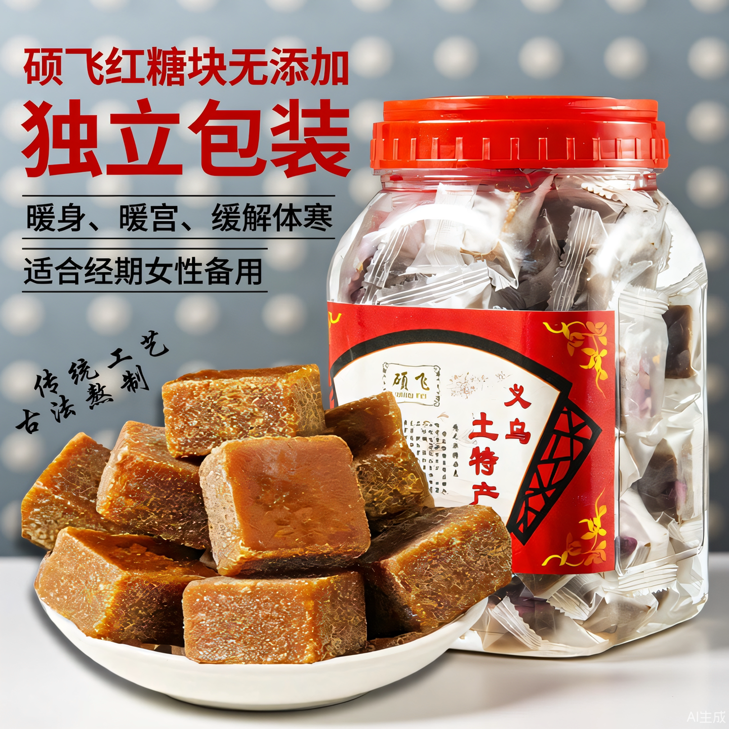 📚 硕飞正宗古法熬制红糖块独立包装女生理期大姨妈备用义乌蔗糖黑糖