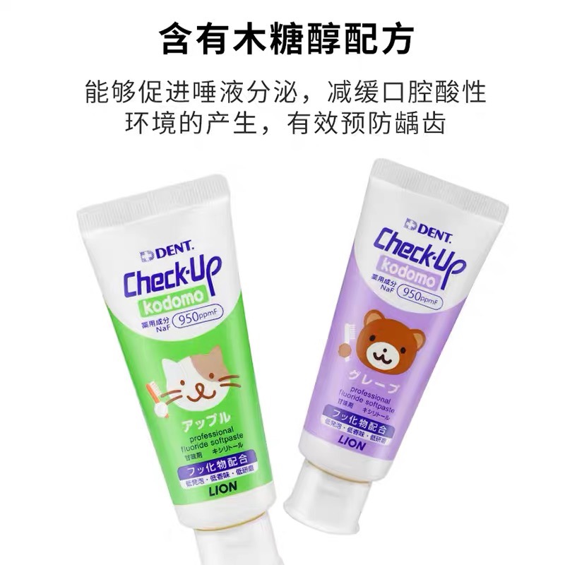 📚 日本进口LION狮王Check up龋克菲儿童低氟防蛀牙膏1-2-6-12岁固齿