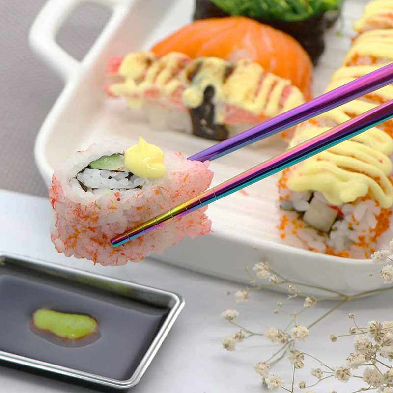 📚 1 Pair Stainless Steel Chinese Chopsticks Non-Slip Reusable