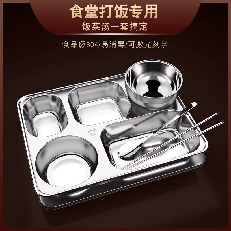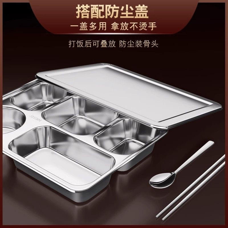 📚 304食品级不锈钢餐盘大人款分格食堂商用成人家用学生饭盘带盖碗