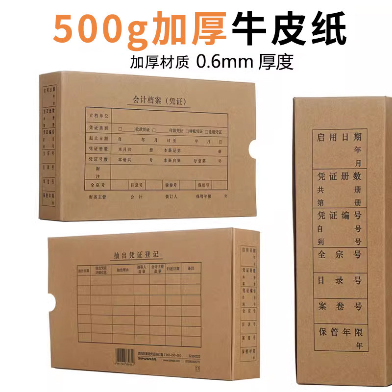 📚 西玛会计凭证档案盒发票A4A5硬纸板凭证封面加厚牛皮纸整理盒子财务用品收纳票据单据双封口侧开口记账凭证盒
